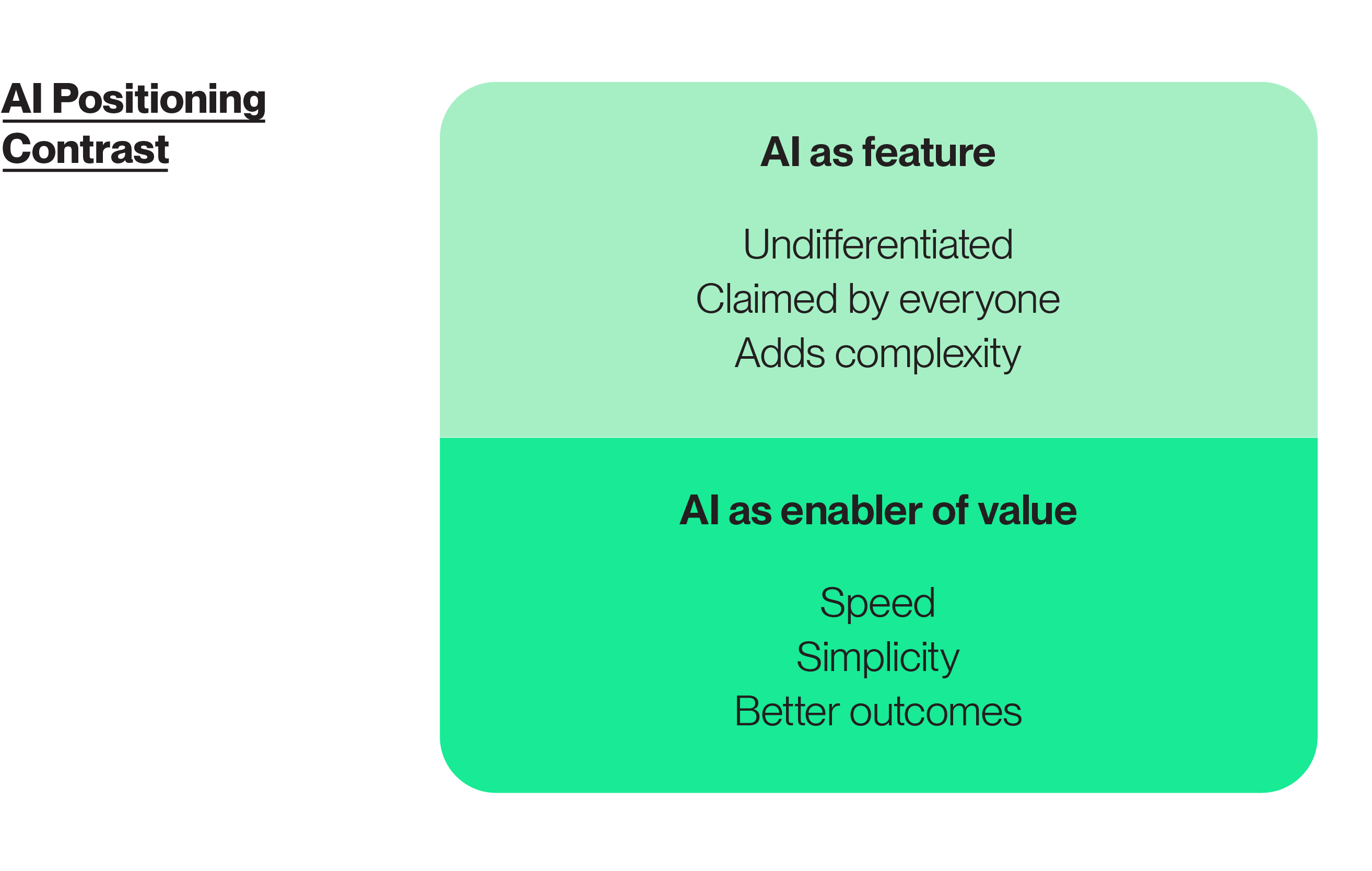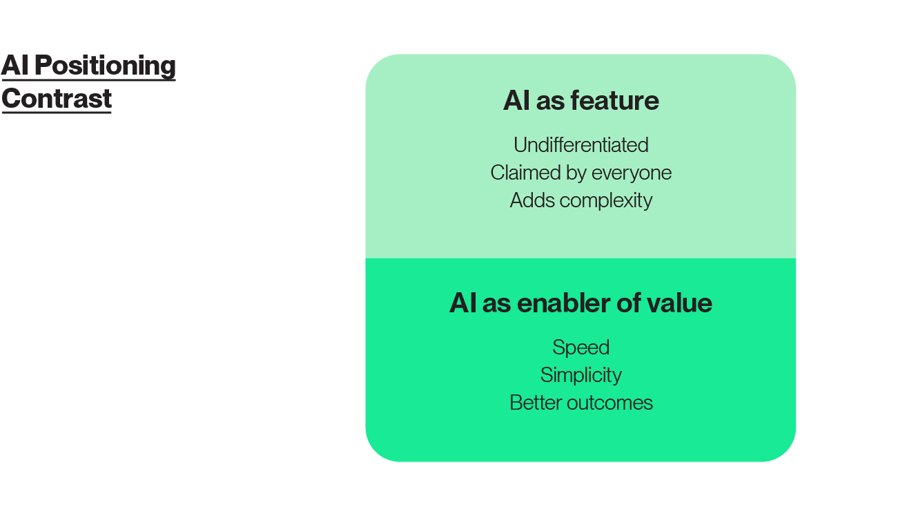 Buyers do not value AI itself. They value what it enables. Faster decisions. Greater accuracy. Less friction. Better outcomes.